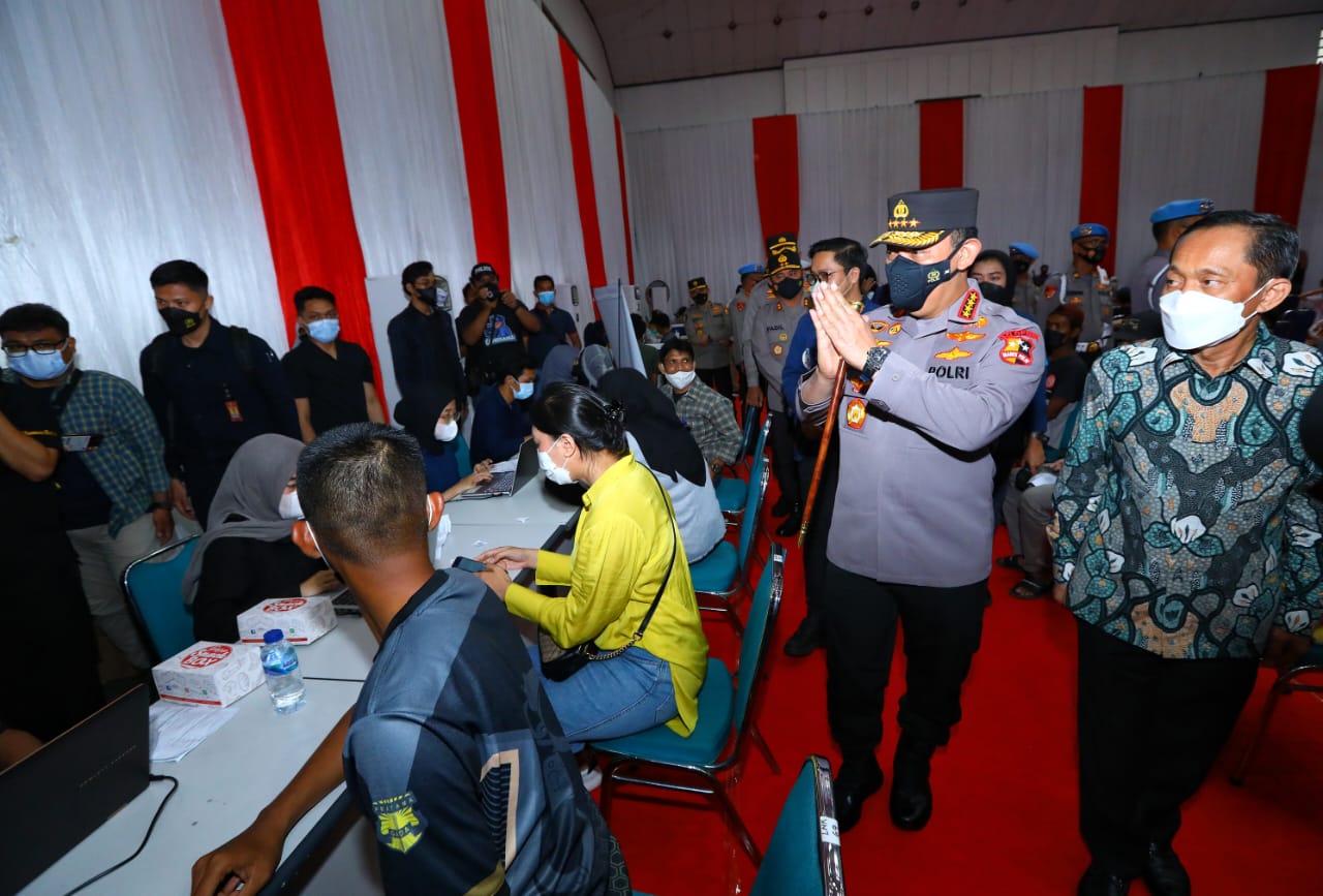 Mediakawasan.co.id, Jakarta- Kapolri Jenderal Listyo Sigit Prabowo meninjau secara langsung kegiatan akselerasi vaksinasi yang diselenggarakan bersama dengan elemen mahasiswa, BEM dan Organisasi Kepemudaan (OKP) di Gelanggang Olahraga Universitas Trisakti, Jakarta, Selasa (29/3/2022).