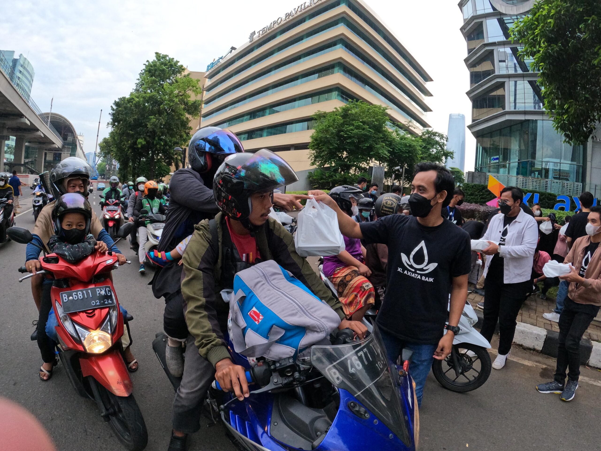 Paket takjil buka puasa ini berupa nasi kotak dan air mineral. Dalam pendistribusiannya, Karyawan XL Axiata secara aktif turut terjun langsung membagikan paket takjil tersebut di depan kantor hingga ke jalan protokol HR. Rasuna Said, Jakarta Selatan.