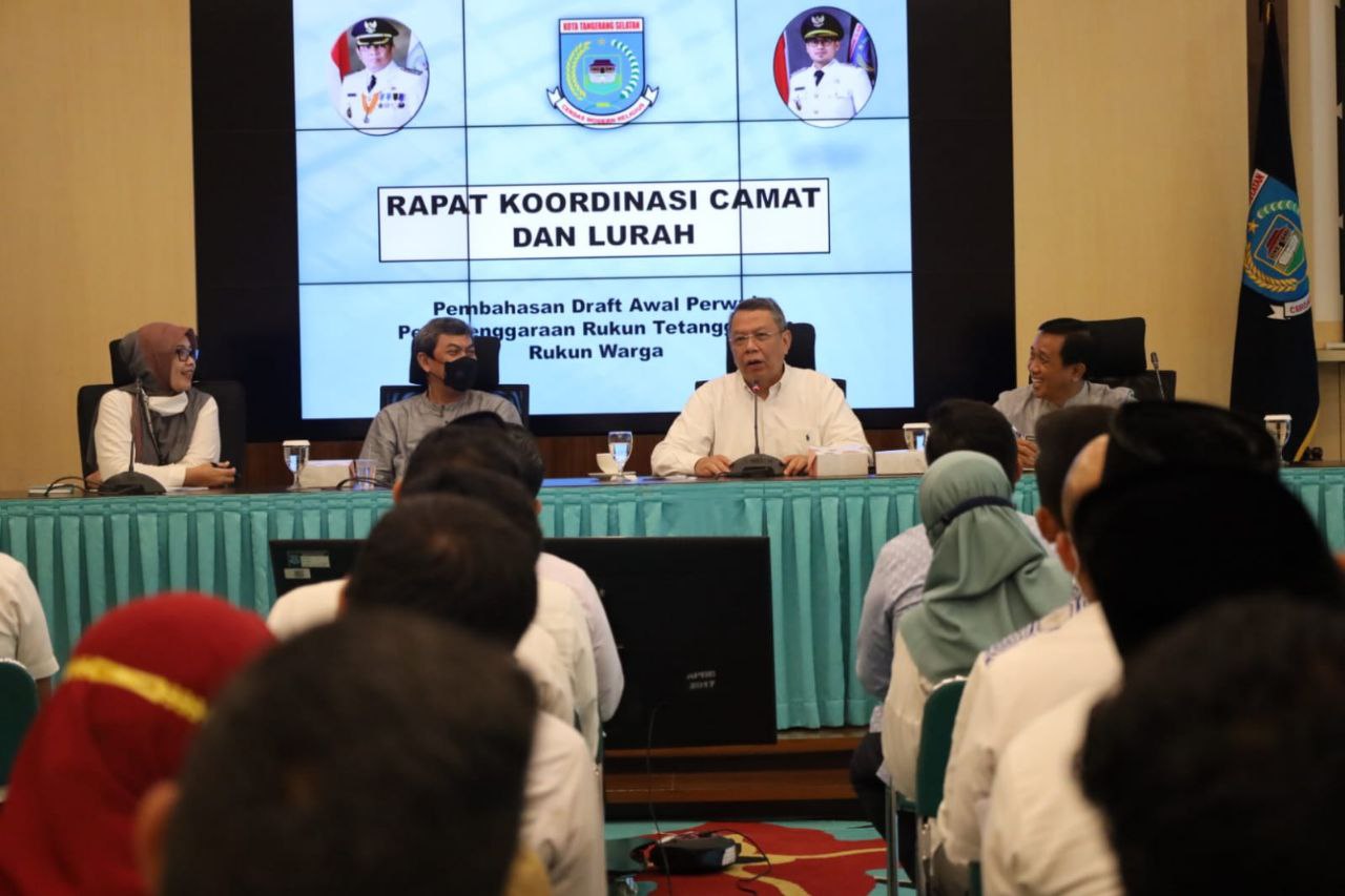 Mediakawasan.co.id, Serpong Tangsel- Pemerintah Kota Tangerang Selatan membahas draf awal Peraturan Wali Kota Penyelenggara RT dan RW.Dalam draf tersebut salah satunya berisikan mengenai kenaikan insentif RT dan RW. Oleh karena itu peran RT dan RW menjadi sentral, terutama dalam hal membantu program pemerintah yang berkaitan dengan pembebasan lahan untuk pembangunan bagi masyarakat. Dimana proses ini memakan waktu dan juga bantuan dari pihak RT dan RW setempat. Hal tersebut diungkapkan dalam kegiatan sosialisasi draf RT dan RW di Blandongan, Ciputat, Jumat (20/5).