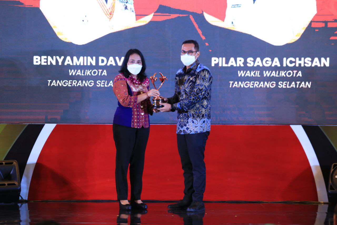 Mediakawasan.co.id, Bogor- Kota Tangerang Selatan kembali meraih penghargaan Kota Layak Anak (KLA) 2022 kategori Nindya dari Kementerian Pemberdayaan Perempuan dan Perlindungan Anak (PPPA).Penghargaan tersebut diberikan secara langsung oleh Menteri PPPA Bintang Puspayoga kepada Wakil Wali Kota Pilar Saga Ichsan dalam ajang penganugerahan Apresiasi Kabupaten/Kota Layak Anak 2022 yang bertempat di Hotel Novotel, Bogor. Jumat (22/07/2022).