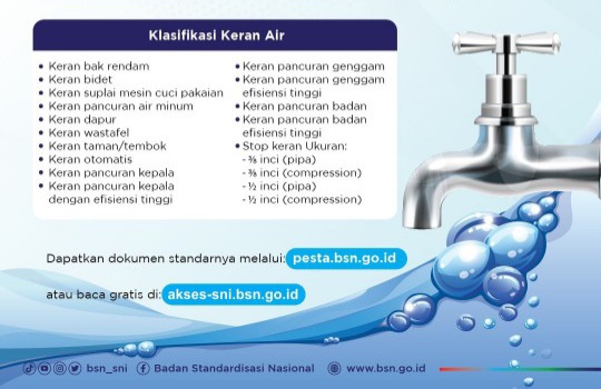 “Standar ini menetapkan persyaratan mutu, cara uji, syarat lulus uji untuk keran air suplai untuk keperluan domestik dengan ukuran keran sampai dengan 1 inci,” lanjutnya.