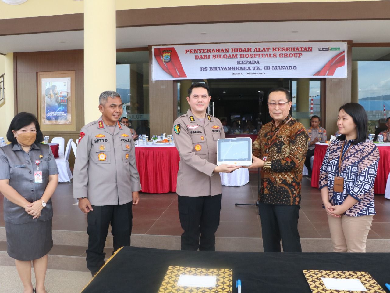 Kepolisian Daerah Sulawesi Utara (Sulut) melalui Kapolda Irjen Pol Drs Setyo Budiyanto SH MH, Wakapolda Brigjen Pol Johnny Eddizon Isir bersama pejabat utama lainnya, mengikuti jalannya kegiatan dan menerima hibah alkes tersebut yang diserahkan CEO Rumah Sakit Siloam Manado Prof. Dr. Herman Karamoy, SE. MSi., Ak, CA., bersama Direktur Siloam Manado, dr Liany Mokoginta.