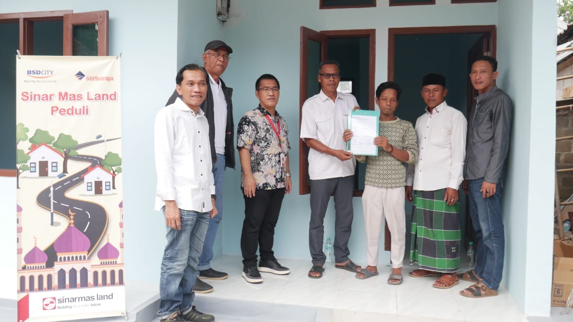 Mediakawasan.co.id, Tangerang- Sinar Mas Land sebagai perusahaan pengembang properti terus berupaya untuk menghadirkan hunian yang baik dan nyaman guna meningkatkan kualitas hidup para penghuni. Upaya tersebut tidak hanya diwujudkan untuk konsumennya saja, melainkan juga kepada sejumlah warga yang tinggal di sekitar lingkungan pembangunan perusahaan melalui program bantuan Renovasi Rumah. Tahun ini, Sinar Mas Land melalui PT Bumi Serpong Damai Tbk kembali merenovasi rumah warga yang tidak layak huni di beberapa titik lokasi di wilayah Kabupaten Tangerang, yaitu di Kampung Sinangpalai, Desa Situ Gadung; Kampung Tegal, Desa Pagedangan; Kampung Ciakar, Desa Cicalengka (ketiganya ada di Kecamatan Pagedangan), dan Kampung Cisauk, Desa Sampora, Kecamatan Cisauk.