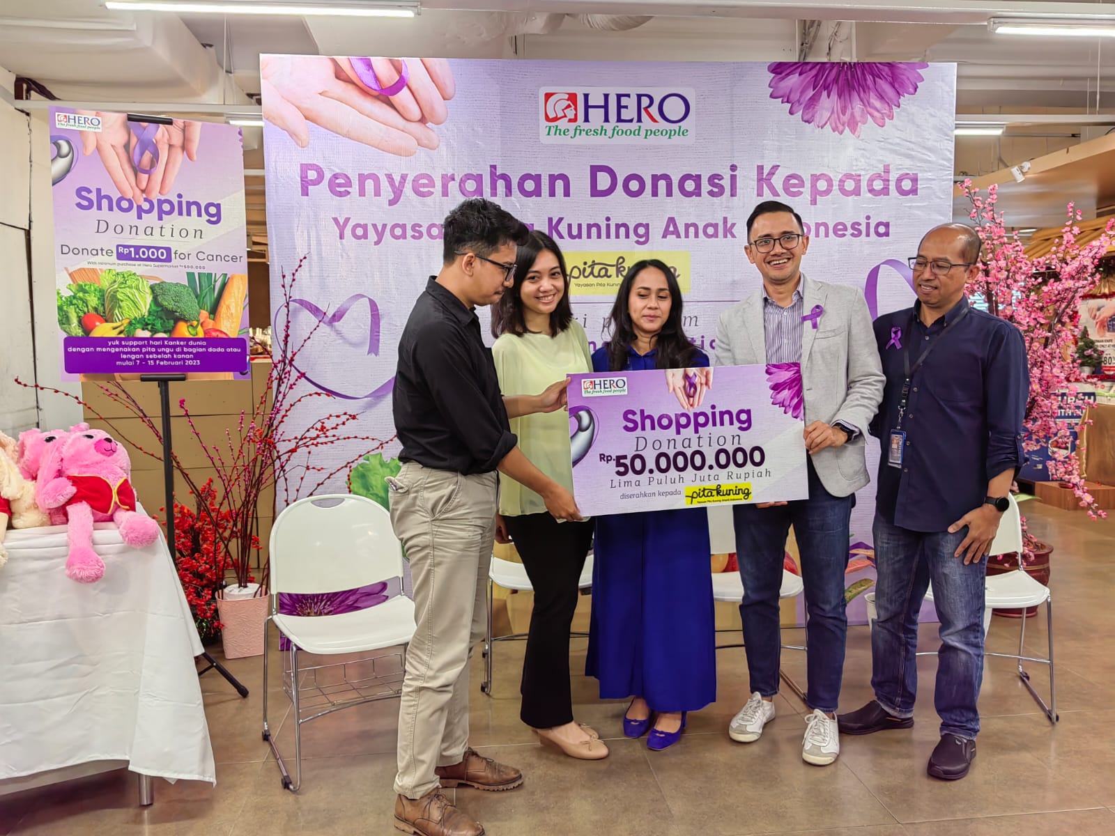 Mediakawasan.co.id, Jakarta – Dalam rangka Hari Kanker Anak Sedunia 2023, PT Hero Supermarket Tbk melalui Hero Supermarket berkolaborasi dengan Yayasan Pita Kuning dengan memberikan dukungan berupa donasi materil untuk anak dengan kanker terutama mereka yang berasal dari keluarga prasejahtera. Program kolaborasi dan donasi bagi anak dengan kanker merupakan salah satu kampanye berkelanjutan Hero For Life dibidang kesehatan yaitu #HeroForWellness yang fokus untuk mendukung dan melaksanakan program kesehatan bagi masyarakat Indonesia.
