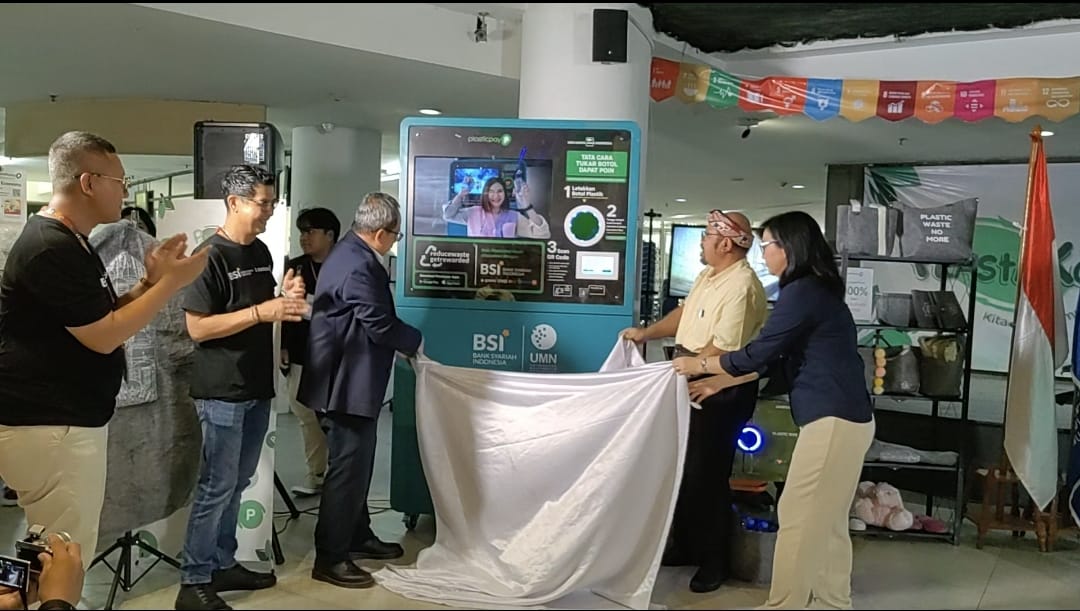 Mediakawasan.co.id, Tangerang – Mahasiswa Universitas Multimedia Nusantara (UMN) mengadakan reverse vending machine (RVM) botol plastik dalam acara ‘PlastiKOS: Kita Olah Sampah’, Selasa (16/3). Sebagai upaya mensukseskan Sustainable Development Goals (SDG) ke-12, Responsible Consumption and Production, kolaborasi bersama Plasticpay ini menjadikan UMN sebagai kampus swasta pertama dan kampus ketiga di Indonesia yang memiliki RVM.