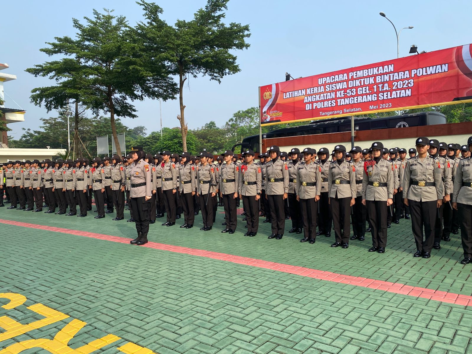 Hal tersebut ditandai dengan upacara pembukaan latihan kerja Siswa Diktuk Bintara Polwan Angkatan ke- 53 di lapangan apel Polres Tangerang Selatan, senin (29/5) pagi.