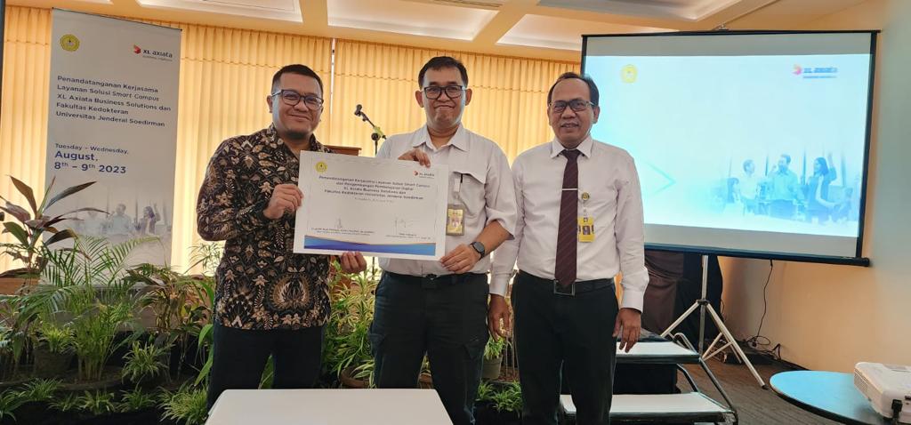 Mediakawasan.co.id, Purwokerto – PT XL Axiata Tbk (XL Axiata) melalui XL Axiata Business Solutions (XLABS) kembali menjalin kemitraan dengan kalangan perguruan tinggi. Kali ini mitra perguruan tinggi yang dimaksud adalah Universitas Jenderal Soedirman (UNSOED), Purwokerto. Melalui kemitraan ini, kedua pihak akan menciptakan ekosistem pembelajaran digital dan solusi smart campus secara khusus di Fakultas Kedokteran. Penandatanganan perjanjian kerjasama ini dilakukan oleh Chief Enterprise Business Officer XL Axiata, Feby Sallyanto, dan Dekan Fakultas Kedokteran Universitas Jenderal Soedirman, Dr. M. Mukhlis Rudi Prihatno, di Purwokerto, Rabu (9/8).