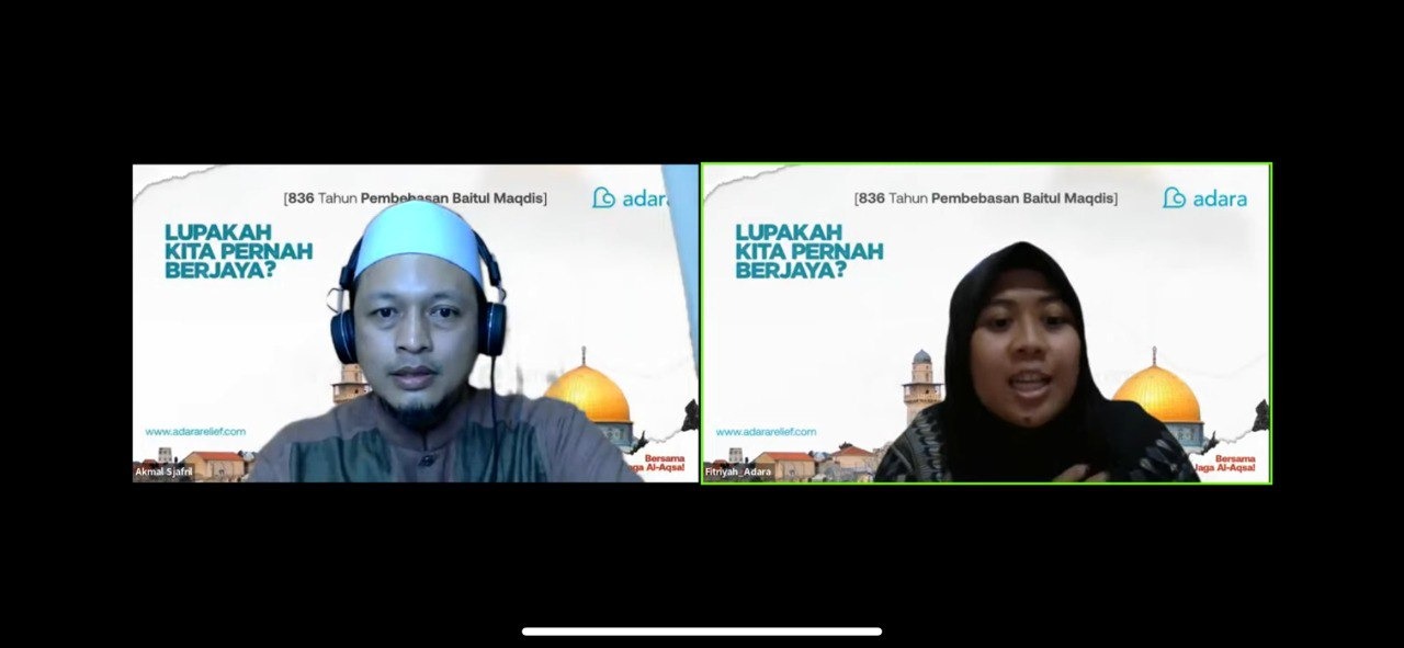 Mediakawasan.co.id, Jakarta — 1 Oktober 2023 lalu Adara Relief International mengadakan webinar edukasi bertema “836 Tahun Pembebasan Baitul Maqdis oleh Generasi Shalahuddin”. Akmal Sjafril, S.T., M.Pd.I., sejarawan dan peneliti dihadirkan sebagai pembicara kegiatan ini. Dihadiri oleh 628 peserta daring melalui kanal Zoom dan Youtube live para peserta sangat antusias menyimak hingga akhir acara.