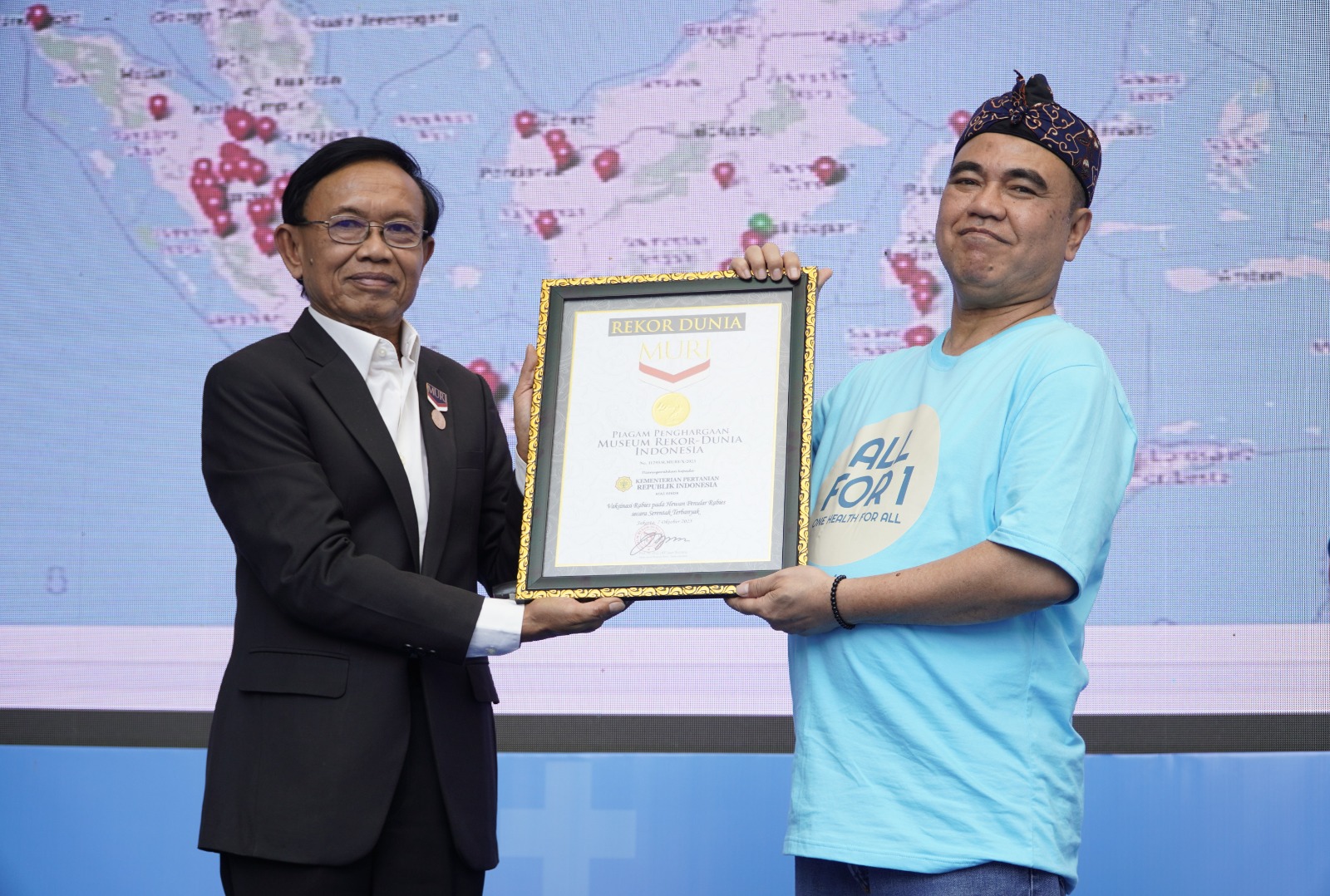 “Hari ini Museum Rekor Dunia Indonesia mengapresiasi, menghargai atas diadakannya vaksinasi secara massal, serentak di Indonesia, dengan mencatat rekor dunia vaksinasi rabies secara serentak terbanyak, hari ini sudah lebih dari 33.000 ekor, penghargaan ini kami berikan kepada yang kita banggakan bersama Kementerian Pertanian” ungkap salah seorang perwakilan MURI.