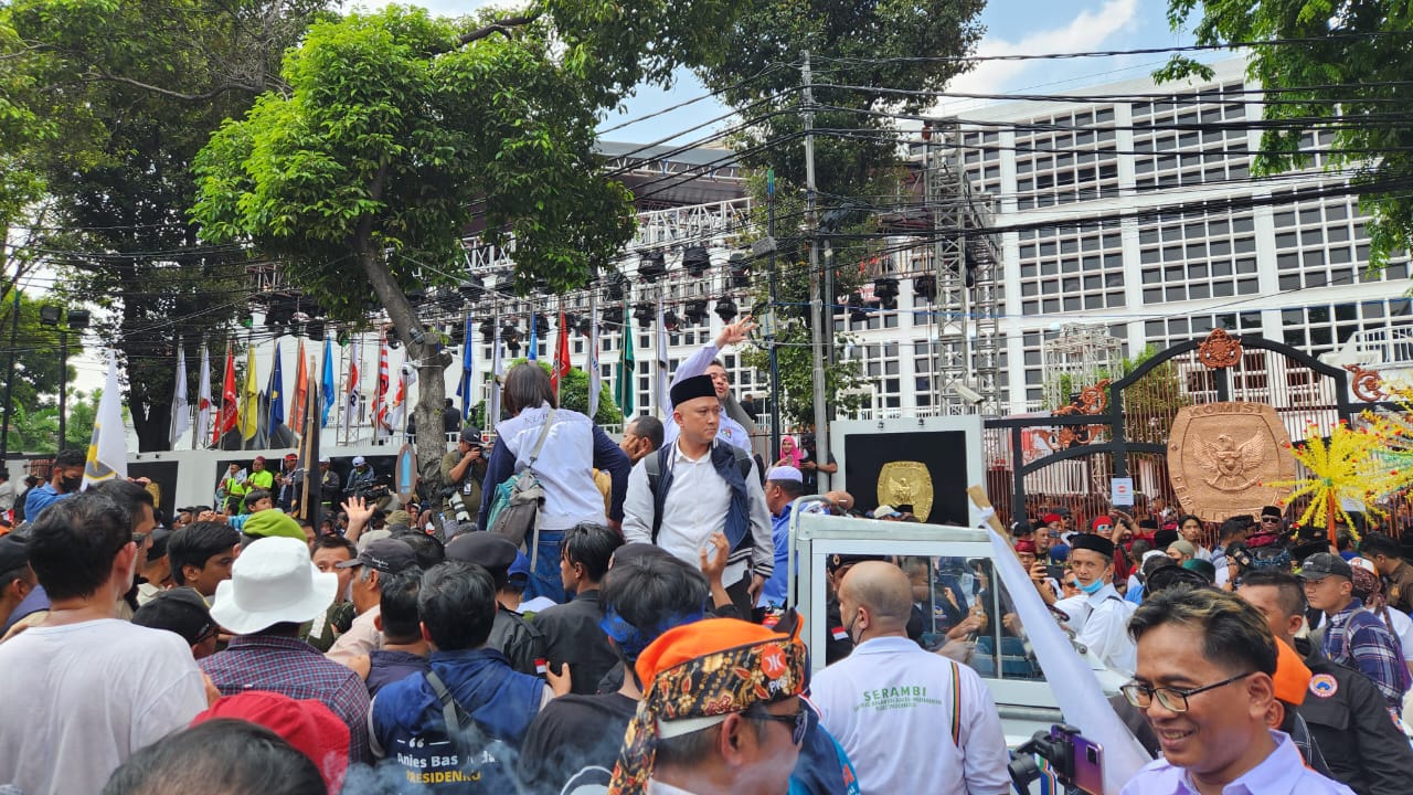 Dalam proses pengamanan tersebut, diketahui Polda Metro Jaya mengerahkan 2.411 personel gabungan untuk mengamankan proses pendaftaran bakal calon Presiden (Bacapres) dan Wakil Presiden (Bacawapres) di gedung KPU.
