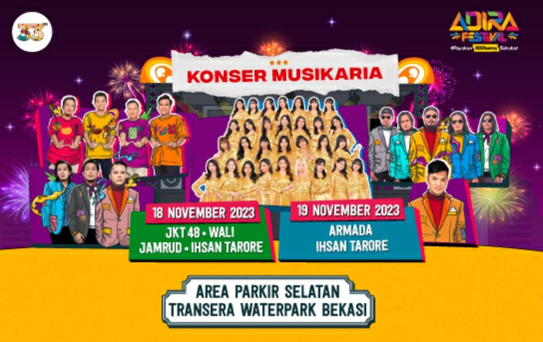 Salah satu kegiatan yang paling dinantikan di Adira Festival adalah Konser Musikaria. Konser ini akan diselenggarakan selama 2 hari, tanggal 18 dan 19 November 2023. Warga Jabodetabek dapat langsung menikmati konser dari musisi idola tanah air, seperti Ihsan Tarore, Jamrud, JKT48, Wali, dan Band Armada.