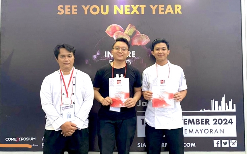 Medali silver diraih oleh Chef Eko untuk kategori kelas Aruna-Asian Cuisine Fish Main Course, sementara itu, medali perunggu berhasil dibawa pulang oleh Chef Rifqy dalam kategori Rose-Brand Modern Jajanan Pasar Platted Dessert, serta Chef Yowen mendapatkan Diploma dengan kategori Fitrafood-Fish Main Course.