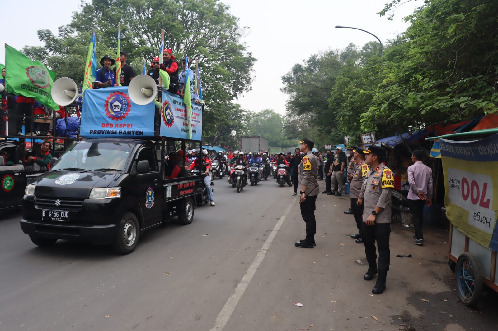 Pengamanan yang dipimpin langsung oleh Kapolres Tangsel AKBP Faisal Febrianto, S.I.K., M.Si. tersebut dalam rangka mengawal keberangkatan massa serikat buruh wilayah Tangerang Raya yang akan menuju Kawasan Pusat Pemerintahan Prov. Banten (KP3B) Serang Banten.