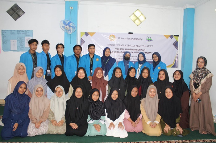 Kegiatan ini dilaksanakan oleh 10 orang mahasiswa aktif Universitas Pamulang yaitu; Shasya Alifia Mulya, Adi Pratama Hamidi, Bagas Bondan Prakoso, Fauziyah Azzahra, Latifah, Meutia, Muhamad Yusuf, Naufal Nizar Washif dan Rido Alamsyah di bawah bimbingan Ibu Najikha Akhyati S.Sy., M. H. Edukasi dilakukan terhadap santri atau peserta didik dari Yayasan Tahfidzul Qur’an Ar-Rahmani dengan tema “Pelatihan Menumbuhkan Jiwa Wirausaha Pada Generasi Muda”.