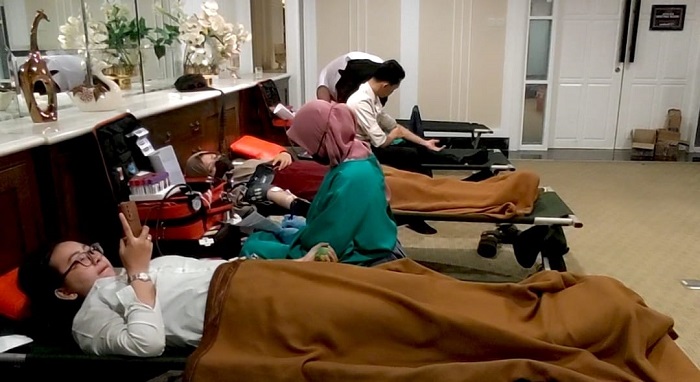 “Hari ini Hotel Santika Premiere Bintaro mengadakan donor darah bekerjasama dengan Palang Merah Indonesia (PMI) Tangsel dan RS Cinta Kasih. Untuk targetnya 75 kantong darah atau 375 CC. Selain donor darah kami juga mengadakan medikal cek up, seperti kolesterol, tekanan darah yang bekerjasama juga dengan RS Cinta Kasih. Donor darah ini kami adakan rutin setiap tiga bulan sekali atau saat mau ada kegiatan spesial, mengingat pada 27 Januari kami akan merayakan HUT ke 10 hotel kami,” ujar Savira.