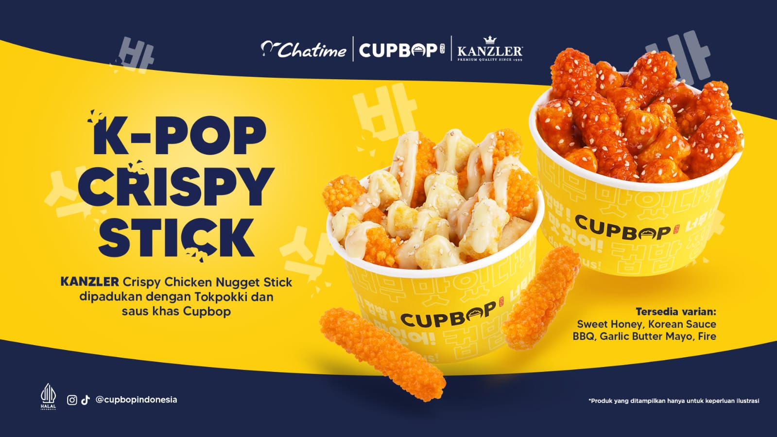 Menu spesial lainnya adalah K-POP Crispy Stick yang merupakan inovasi spesial yang menggabungkan Kanzler Crispy Chicken Nugget Stick dengan pilihan saus khas Cupbop seperti saus pedas manis yang gurih khas Korea (Korean Sauce), saus pedas (Fire Sauce), manis gurihnya saus Sweet Honey, saus umami Garlic Butter Mayo, serta bumbu BBQ yang smokey dan bikin ketagihan. Perpaduan Korean snacks ala Cupbop ini bisa didapatkan dengan harga Rp30.000 per mangkuk di 13 gerai Cupbop dan di lebih dari 180 gerai Chatime yang menghadirkan Korean snacks dari Cupbop, serta dapat dipesan melalui F&B ID App dan aplikasi layanan pesan antar.