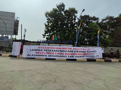 Mediakawasan.co.id, Tangerang Selatan – Sejumlah pemilik unit aparteman Loftvilles City di jalan Sarua Raya, Ciputat Tangerang Selatan, menggelar aksi demo menuntut komitmen PT Bumi Sarua Developmen selaku pengembang. Demo yang dilakukan di depan pintu masuk apartemen Loftvilles City, tampak menarik perhatian para pengguna jalan Sarua Ciputat.