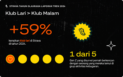 Laporan Strava juga menunjukkan adanya peningkatan minat yang besar terhadap klub lari dan aktivitas grup untuk bersosialisasi, yang terungkap sebagai pendorong utama orang untuk berolahraga.
