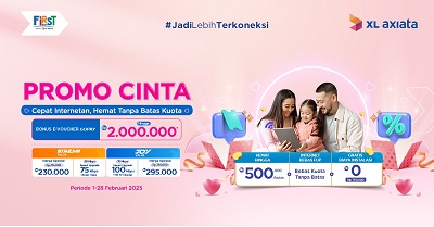 Mediakawasan.co.id Jakarta – Dalam rangka merayakan bulan penuh kasih sayang yang jatuh pada Februari ini, PT XL Axiata Tbk (XL Axiata) melalui First Media menghadirkan promo spesial untuk pelanggan baru maupun pelanggan setia. Nama promonya “CINTA’’ (Cepat Internetan, Hemat Tanpa Batas Kuota) dan “ROMANTIS’’ (Rangkaian Promo Mantab Abis). Lewat promo tematik ini First Media berkomitmen untuk terus memberikan pengalaman terbaik bagi pelanggan agar #JadiLebihTerkoneksi dan menikmati momen spesial bulan kasih sayang ini.