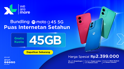 Chief Marketing Officer XL Axiata, Alfons Eric Bosch Sansa, mengatakan, “Kami sangat antusias menghadirkan bundling Moto G45 5G bersama Motorola, yang sekaligus ikut menandai comeback-nya Motorola di Indonesia. Bundling ini juga menjadi bagian dari upaya kami dalam memperluas akses terhadap ekosistem teknologi 5G di Indonesia. Kolaborasi ini juga bertujuan untuk menyediakan akses teknologi 5G yang lebih luas dan terjangkau bagi masyarakat Indonesia. Dengan menggabungkan keunggulan perangkat Moto G45 5G dan jaringan luas XL Axiata, pelanggan dapat menikmati konektivitas cepat dan stabil untuk berbagai kebutuhan digital mereka.”