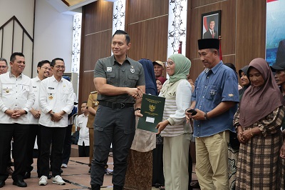 “Kementerian ATR/BPN menyambut baik iktikad baik ini, kami merespons permohonan sertipikasi tanah masyarakat dengan akurasi tertinggi, kecepatan tertinggi, dan alhamdulillah status hak yang tertinggi pula, yaitu Sertipikat Hak Milik. Alhamdulillah telah diterbitkan total 161 Sertipikat Hak Milik bagi masyarakat,” kata Ossy Dermawan yang hadir langsung untuk menyerahkan sertipikat ke warga, di Kantor BP Batam, Selasa (18/03/2025).