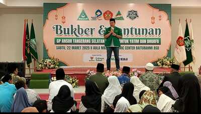 Mediakawasan.co.id, Tangerang Selatan – Gerakan Pemuda (GP) Ansor, Pimpincan Cabang (PC) Kota Tangerang Selatan menggelar acara buka puasa bersama dan santunan anak yatim pada Sabtu, 22 Maret 2025, di Aula Gedung Islamic Center, Masjid Baitul Rahmi, Jalan Rawa Buntu, Serpong, Tangsel. Kegiatan ini merupakan agenda tahunan yang rutin dilaksanakan sebagai bentuk kepedulian terhadap masyarakat yang membutuhkan, terutama di bulan suci Ramadan.