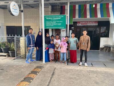 Pemberian paket sembako dilakukan di Lembaga kesejahteraan sosial anak Nuruz Zahroh Jalan Fort Timur No. 32 Jakarta Utara
