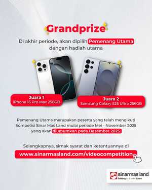 Selain mendapatkan hadiah uang tunai dengan total ratusan juta rupiah, karya-karya terbaik juga akan ditampilkan di berbagai kanal digital resmi milik Sinar Mas Land, memberikan eksposur luas bagi para kreator dan membuka peluang baru dalam dunia konten kreatif. Ikuti akun media sosial kami @sinarmas_land di Instagram dan TikTok untuk mengikuti perkembangan kompetisi video ini. Segera daftarkan dirimu, abadikan momen terbaikmu di proyek-proyek Sinar Mas Land! (Red/rlls)