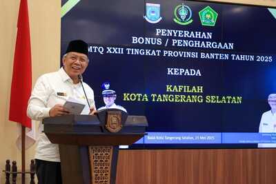 Mediakawasan.co.id, Ciputat – Wali Kota Tangerang Selatan (Tangsel) Benyamin Davnie memberikan apresiasi dan penghargaan setinggi-tingginya kepada 63 kafilah Tangsel yang telah mengharumkan nama daerah dalam Musabaqah Tilawatil Quran (MTQ) tingkat Provinsi Banten 2025.