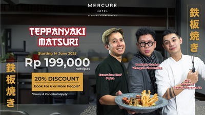 Mediakawasan.co.id, Tangerang Selatan – Mint & Pepper Restaurant di Mercure Serpong Alam Sutera dengan bangga mempersembahkan Teppanyaki Matsuri, sebuah pengalaman kuliner Jepang otentik yang akan berlangsung mulai Sabtu, 14 Juni 2025. Teppanyaki Matsuri hanya tersedia pada hari Sabtu dari pukul 12:00 hingga 14:30 dan 18:00 hingga 20:30, serta pada hari Minggu dari pukul 12:00 hingga 14:30, cocok untuk dinikmati bersama teman dan keluarga.