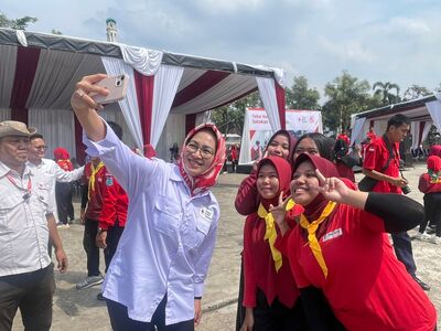 Airin turut memberikan motivasi kepada ratusan anggota PMR dari berbagai sekolah yang turut hadir memeriahkan puncak peringatan HUT PMI ke-80.