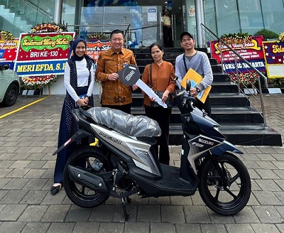 Untuk pemenang undian hadiah Simpedes, nasabah BRI BO Jakarta Warung Buncit, Riamsa Sijabat memenangkan satu unit Sepeda Motor Suzuki Nex II.