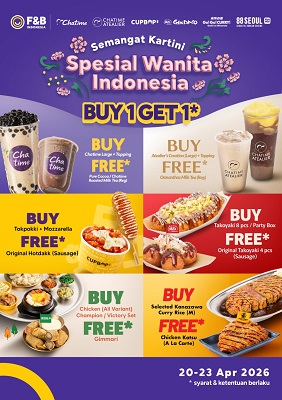 Mediakawasan.co.id, Jakarta – F&B ID merayakan semangat Kartini yang identik dengan keberanian, inspirasi, dan peran perempuan masa kini, melalui promo spesial yang didedikasikan bagi para perempuan di seluruh Indonesia. Berlangsung mulai dari 20 sampai dengan 23 April 2026, program ini menjadi cara F&B ID untuk mengapresiasi perempuan dalam setiap peran, langkah, dan momen yang mereka jalani setiap hari.