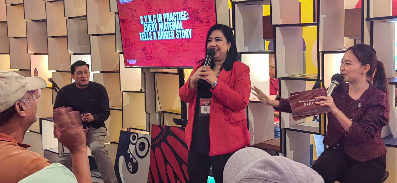 Sementara itu, instalasi interaktif S.Y.N.C hasil kolaborasi PT Mowilex Indonesia dan Atelier Riri tetap menjadi daya tarik utama pameran. Mengusung konsep keterhubungan antar elemen, booth ini menghadirkan pengalaman ruang yang memadukan warna, material, dan interaksi dalam satu kesatuan naratif.
